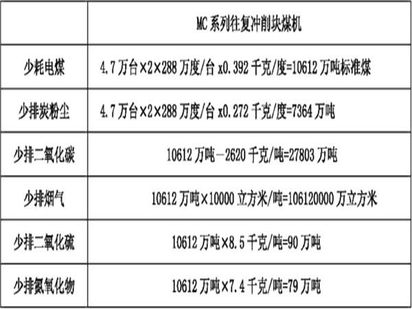 智能往復(fù)鋸割塊煤機環(huán)保數(shù)據(jù)表: