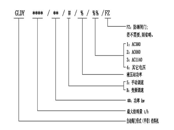 自動閥門帶式(甲帶)給料機(jī)的型號說明: