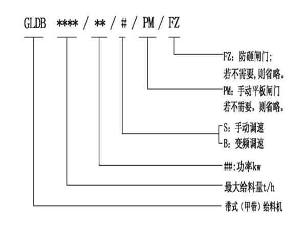帶式(甲帶)給料機(jī)型號(hào)說明: